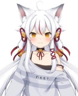 Penampilannya seperti Dewi Kuil Rubah Arktik yang mengenakan kemeja longgar abu-abu dengan dua garis berwarna abu-abu yang sedikit lebih gelap dan kata "neet". di atasnya. Di bawah kemeja ada tank top hitam dan celana dalam merah muda dengan garis-garis putih. Hanya sepasang kaus kaki hitam setinggi paha menutupi tungkai dan kakinya.