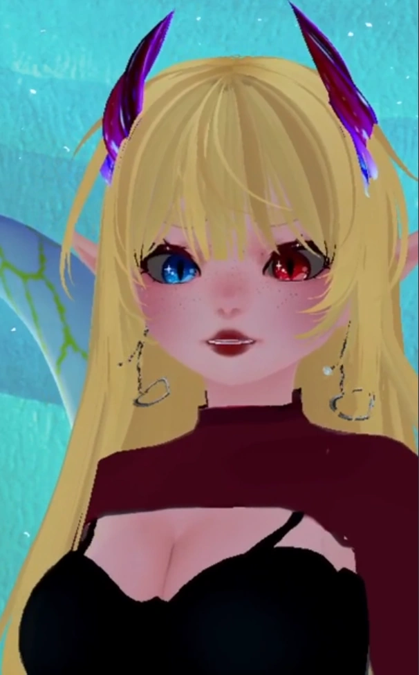 Przyciąga szczególną uwagę dzięki wyraźnej heterochromii: lewe oko ma intensewnie lodowoniebieską barwę, natomiast prawie mieni się szkarłatną czerwienią. Twarz ma obsypaną delikantymi piegami i wyraźnym rumieńcem co dodaje jej naturalnego uroku.
