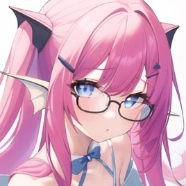 She had long pink hair in twintails with fins and hairclips with black glasses and light blue eyes.