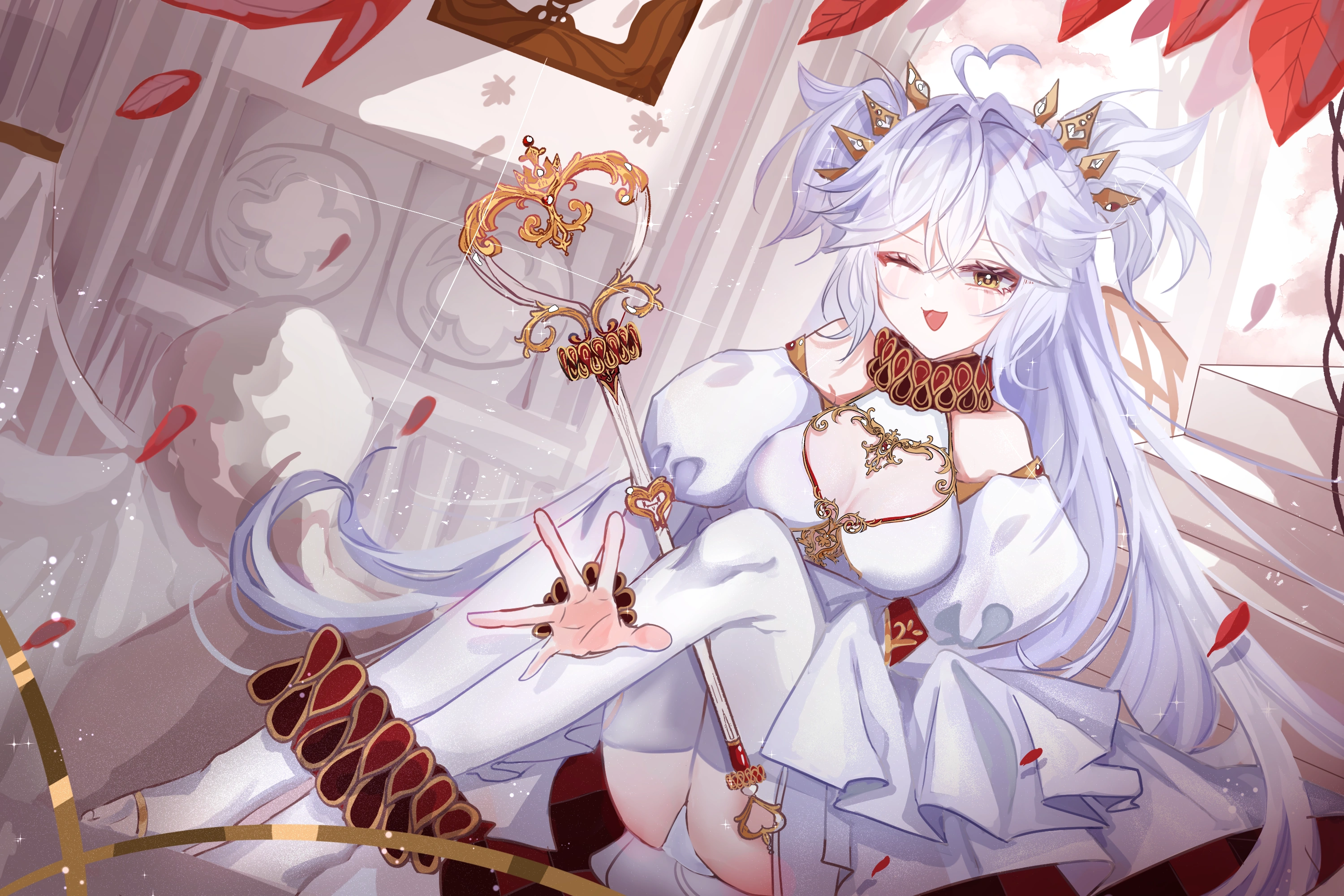 Long or short white hair depending on the day, she uses magic to tie most of her locks into pigtails for comfort and practicality. Almost unnervingly large pupils denote a constant energy and wildness. (She is not on crack, I swear) Gold markings on both her chest and under her eyes, only recently received after the death of the previous vessels.