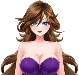 They have long, layered brown hair. They are often seen wearing a long purple dress, however this can change based on the form they take. the color of the dress can range from anywhere from red, to Green to blue and even black. they are known for having large assets, but has since changed appearance slightly, which being a shapeshifting Lewdtuber may show them as being different in volume if the moment needs for it to be. They wear a black pair of heels that contrasts to the color of their dress From time to time, they tend to wear glasses but prefers to not wear them on a regular basis, they will resort to wearing them if they are working on a project or "conducting business."