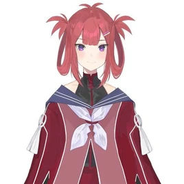 She has red hair and twintails in hair 'loops' that represents a crab shape/silhouette with hairclips and light purple eyes.