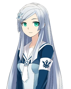 Shurelya is a young woman with green eyes and long silver hair. She wears the white and blue uniform of Pastelle Academy. Her hair is decorated with a silver snowflake pin. Her eyes have been observed to turn red when angry or using her latent powers.